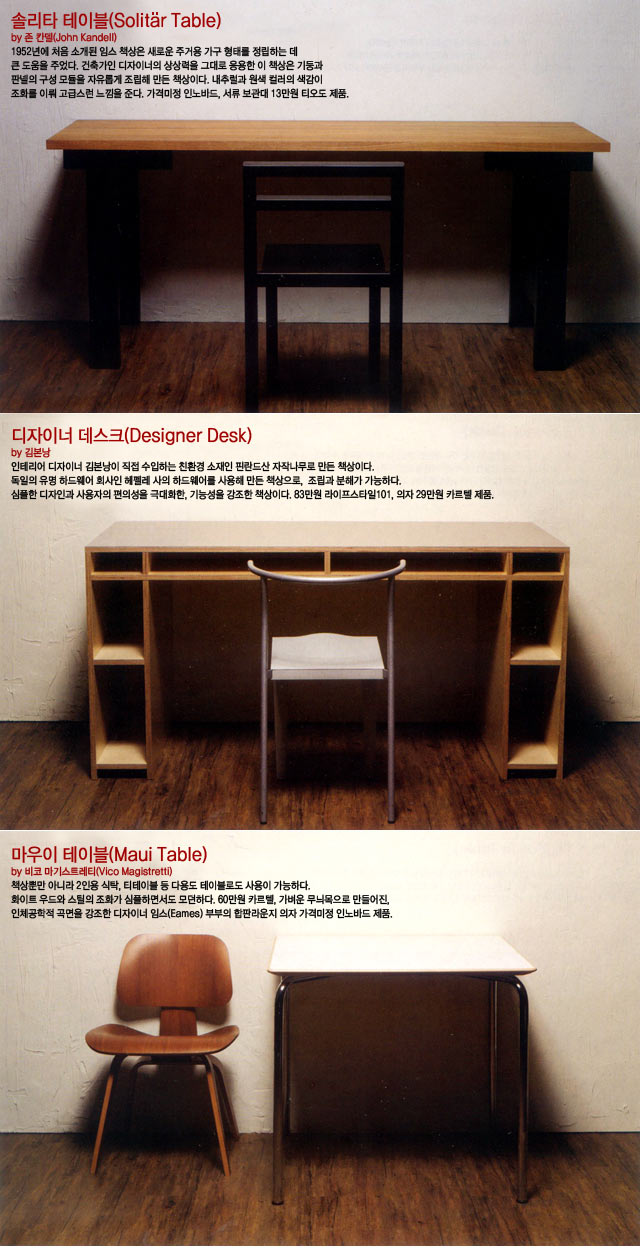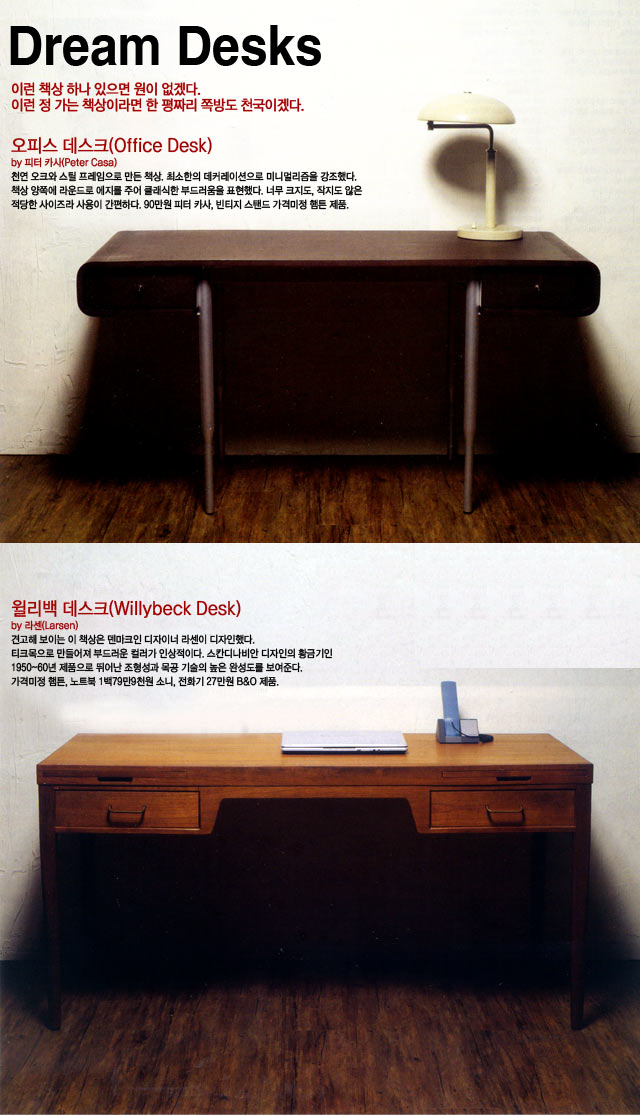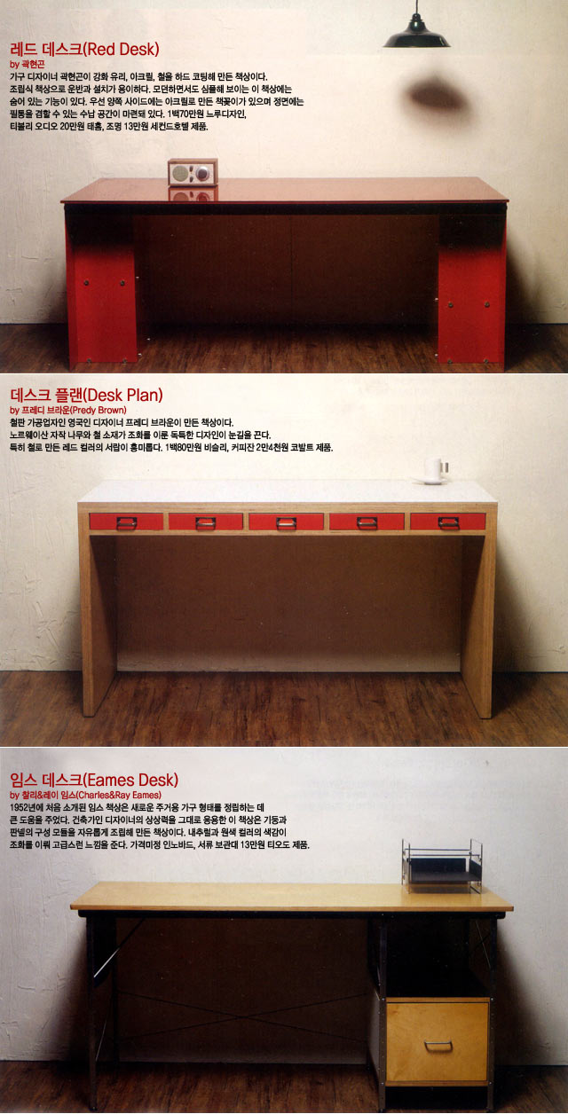이전 기사보기 다음 기사보기 Dream Desks 글자크기 설정 가 가 기사의 본문 내용은 이 글자크기로 변경됩니다. 스크롤 이동 상태바 FASHION Dream Desks 입력 2006.04.24 19:21 댓글 0 글자크기 설정 가 가 기사의 본문 내용은 이 글자크기로 변경됩니다. 이런 책상 하나 있으면 원이 없겠다. 이런 정 가는 책상이라면 한 평짜리 쪽방도 천국이겠다. 이 기사를 공유합니다 저작권자 © 아레나옴므플러스 무단전재 및 재배포, AI학습 및 활용 금지