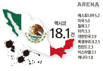한국은 의외로 살인 사건이 많이 일어나는 나라다. 인구 10만 명당 2.9건의 살인 사건이 발생한다. 29개 OECD 국가 중 살인 사건 발생률은 9위로 높은 편이다. 밤늦게 돌아다녀도 된다는 말은 옛말이다.