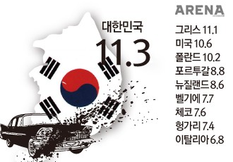 한국인의 성격이 급하기 때문만은 아니다. 특별 및 광역시의 인구 10만 명당 교통사고 사망자 수는 5.9명에 불과하지만 도에 속한 군 지역은 무려 34.5명으로 집결되어, 대도시보다 지방의 사망자 수가 오히려 더 높다. 지방의 도로 안전 시설이 미흡하고, 고령 운전자가 늘어났기 때문이다. 교외로 드라이브 가려거든 각별히 조심할 필요가 있다.