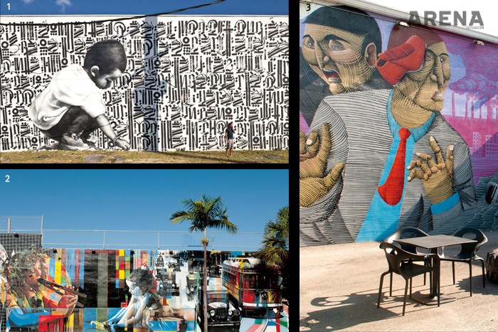 1. 윈우드 예술 지구 거리의 벽화. 엘 맥과 레트나의 작품이다.