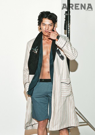 ▶흰색 핀턱 셔츠 알프레드 던힐, 흰색 팬츠 에보니카, 어깨에 걸친 회색 재킷 에르메네질도 제냐, 검은색 슬립온 아니마스코드, 팔에 찬 뱅글·재킷의 브로치 모두 마르스봄 제품.