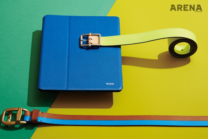 케이스나 벨트는 기분에 따라 바꿔 쓸 수 있어야 한다. 소소하고 컬러풀한 액세서리가 다양하게 필요한 이유다. 파란색 아이패드 케이스 25만원 투미, 형광 노란색 벨트 가격미정 루이 비통, 파란색 줄로 포인트를 준 가죽 벨트 36만원 마크 제이콥스 by 무이 제품.
