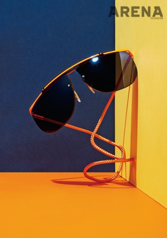 활동적이고 강렬한 형광색은 스포티한 액세서리에 주로 쓰인다. 이 스포츠 선글라스가 그런 경우다. 프레임의 윗부분과 다리에서 이어진 끈 모두 형광 주황색으로 마무리했다. 가격미정 루이 비통 제품.