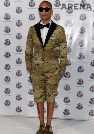 카무플라주 반바지 턱시도 차림의 퍼렐 윌리엄스처럼 위트 넘치는 이브닝 룩을 입기란 쉬운 일이 아니다.
