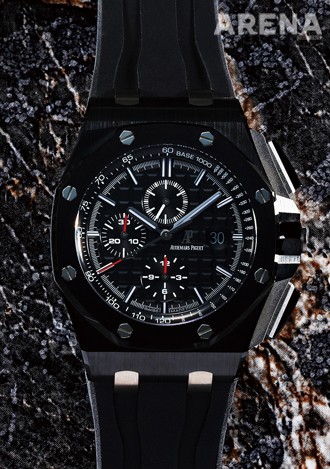 강직한 옥타곤 케이스와 8개의 스크루, 로얄오크 오프쇼어가 지니는 세련된 역동성은 새로운 소재와 결합되어 더욱 부각된다. 블랙 세라믹 소재로 완성한 로얄오크 오프쇼어 크로노그래프다.