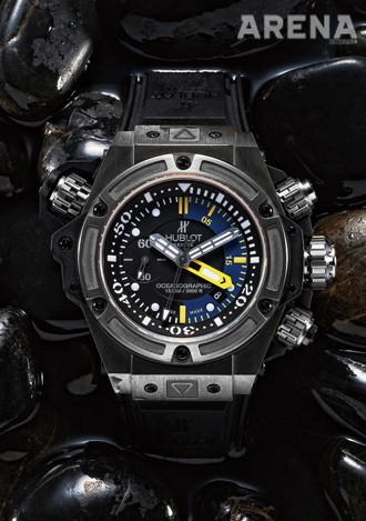 빅뱅의 대담함을 가뿐하게 뛰어넘는 킹 파워 오셔노그래픽 1000은 투박한 기계 장치처럼 웅장하기까지 하다. 소재 특유의 질감을 적나라하게 표현한 티타늄 케이스, 불쑥 튀어나온 푸시 버튼과 크라운 역시 시계의 콘셉트를 일관되게 말한다. 1,000m 방수가 가능하다는 것이 어쩌면 당연하게 느껴질 정도로. 2천7백만원대.