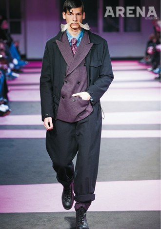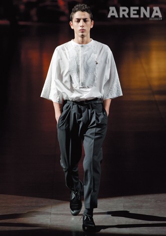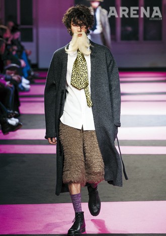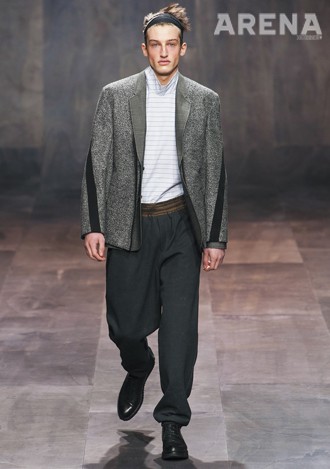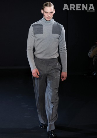 탄탄한 스웨터, 앵클부츠와 조화를 이룬 꼬르넬리아니, 무게감이 느껴지는 상의의 실루엣을 더욱 돋보이게 했던 살바토레 페라가모, ‘카페 레이서’의 스타일에 완벽하게 작용한 3.1 필립 림, 종아리 길이의 짧은 팬츠로 1960년대 오피스 룩을 연출한 까르벵, 볼륨감을 강조한 상의와 대비를 이뤘던 닐 바렛, 온화한 캐주얼의 칼라, 간결하고 포멀하게 작용했던 세루티의 팬츠 모두 훌륭했다.