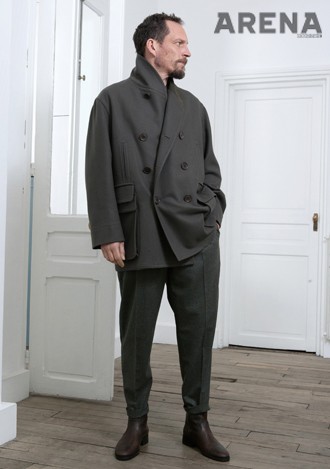 크리스토프 르메르의 팬츠는 가장 이상적인 볼륨 팬츠의 형태에 가깝다. 풍성한 허벅지 둘레에서 시작해 좁다랗게 발목에 안착하는 실루엣이 기가 막힐 정도다. 바지의 실루엣을 망치지 않는 앵클부츠와 비슷한 색감의 상의와 조화도 차분하고 우아하다.