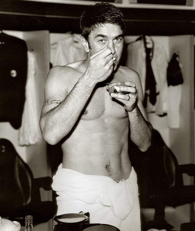 알레산드로 코스타쿠르타 라커룸에서 포착된 코스타쿠르타의 몸은 20대에 가깝지만, 실은 말디니보다도 나이가 많다. 말디니와 함께 이탈리아 축구를 대표하는 미남자인 그는 오랜 시간 AC 밀란의 수비수로 활약하면서 클럽 역사의 현장에 있었다. 강력한 대인 마크와 상대 공격의 흐름을 읽고 볼을 차단하는 능력이 뛰어나다. 이번 시즌으로 계약이 만료된 그의 거취는 이탈리아 온 국민의 관심사. |
