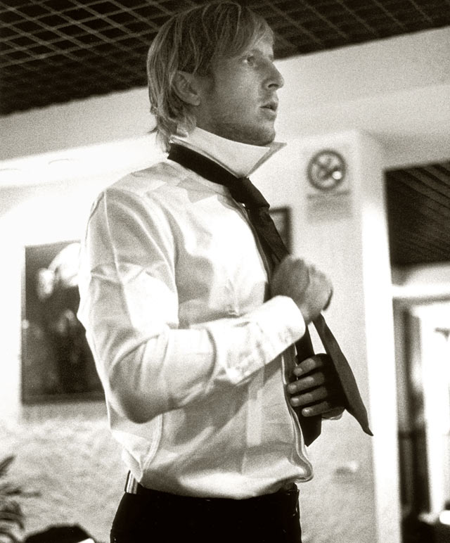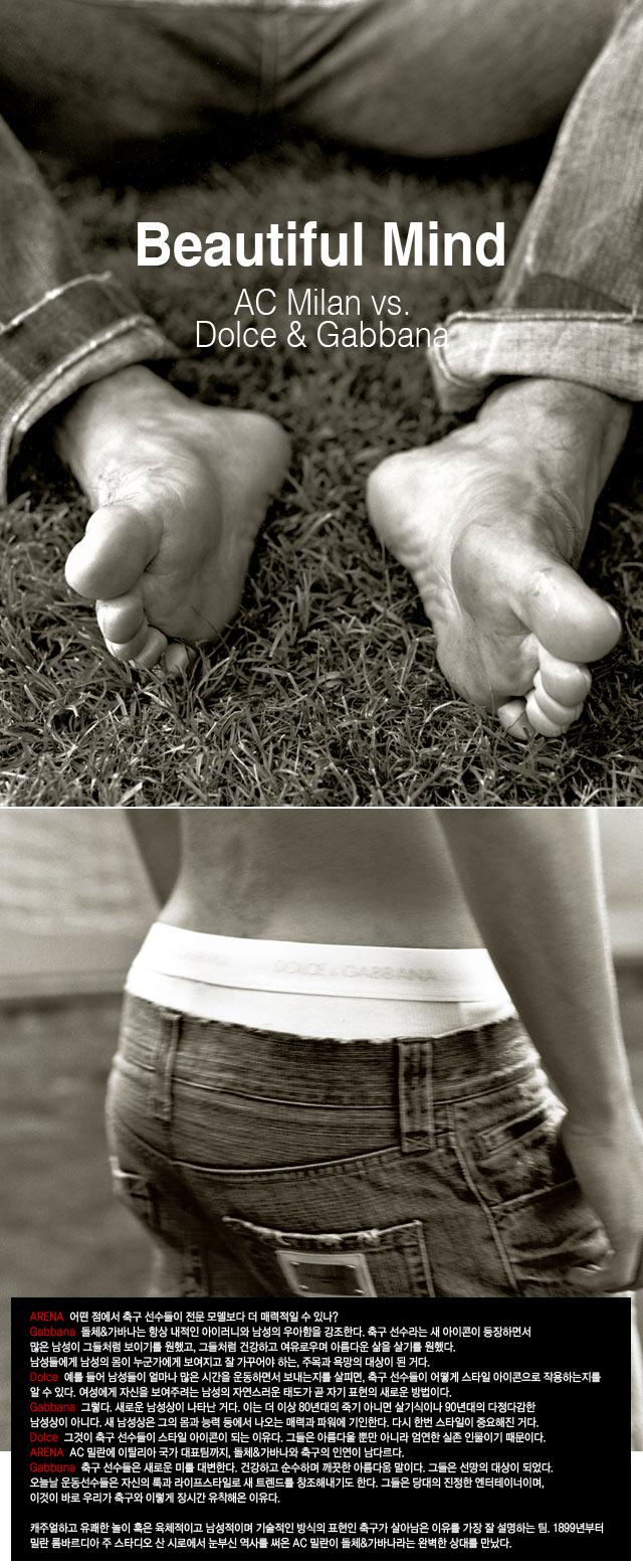 안드레이 셰브첸코 타이를 풀고 주스를 마시는 평범한 일상에서 세리에 A가 공인한 득점 기계의 숨은 매력이 드러난다. 어엿한 AC 밀란의 얼굴이 된 셰브첸코가 챔피언스 리그에서 쌓인 피로와 우크라이나 대표 선수로 뛰는 첫 월드컵의 스트레스 대신 특유의 여유를 찾기 위해 애쓰고 있다. 우크라이나가 낳은 역대 최고의 축구, 아니 스포츠 선수인 셰브첸코는 활동 범위가 넓고 빠르며 세기를 조절할 줄도 안다. 잠시 망설임 없는 과감한 슈팅과 유연한 몸놀림도 돋보인다. 유럽의 모든 감독들처럼, 조세 무링요도 세계에서 가장 완벽한 스트라이커인 셰브첸코를 호시탐탐 노리고 있다. 셰브첸코는 지난 1999년 여름, 1천6백만 파운드의 이적료로 AC 밀란에 입단하며 어린 시절의 꿈을 이뤘고 입단하기 무섭게 24골을 몰아쳐 마르코 반 바스텐 이후 8년 만에 나온 AC 밀란의 득점왕이 되었다. 이후에 그는 밀란 더비나 챔피언스 리그 같은 빅게임에서 수없이 많은 드라마틱한 장면을 연출하며 AC 밀란의 새 리더가 되었다. 이제 셰브첸코가 반 바스텐과 비교되며 기대를 모았던 것처럼, AC 밀란의 옷을 입은 젊은 스트라이커를 셰브첸코와 비교해야 할 차례가 된 거다. 최근 무릎을 다쳤지만, 우크라이나의 2006년 독일 월드컵 본선 진출을 몸 바쳐 이끈 그가 1994년 스웨덴, 1998년 크로아티아, 2002년 한국과 터키에 이어 또 다른 기적을 일구는 일을 망설일 리 없다. |