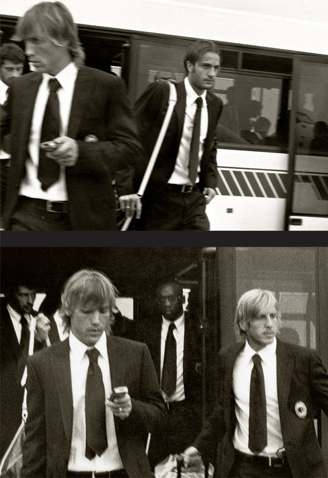 (왼쪽부터 시계 방향)돌체&가바나로 성장(盛裝)한 크로아티아 대표팀 출신의 다리오 시미치, 이탈리아 대표팀의 신형 포워드인 알베르토 질라르디노, 한국 대표팀의 숙제로 남은 스위스 대표팀의 캡틴, 요한 보겔, 유럽 최고의 파이터로 악명 높은 마시모 암브로시니 등이 공항을 빠져나가기 위해 걸음을 재촉하고 있다. |