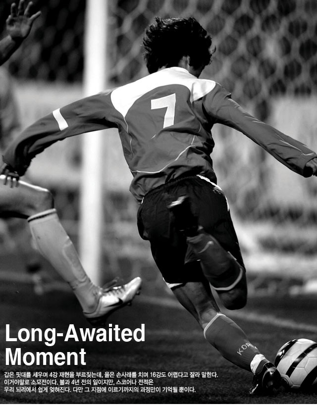 설기현의 자기 방어 울버햄튼의 1부 리그 승격이 힘들어지면서 설기현의 마음은 서둘러 독일로 향했다. 그에게 두 번째인 이번 월드컵은 지금보다 더 큰 곳으로 가는 일련의 과정일 것이다. 설기현은 자신이 도마에 오를 때마다 특유의 근면, 성실, 봉사 정신과 드라마틱한 반전으로 스스로를 지켜낸 전력을 갖고 있다. 독일 월드컵에서 자신이 ‘탈아시아권’ 신분임을 각인시킨다면, 그는 머지않아 프리미어 리그의 눈 밝은 에인전트들로부터 달콤한 전화 세례를 받게 될 것이다. |