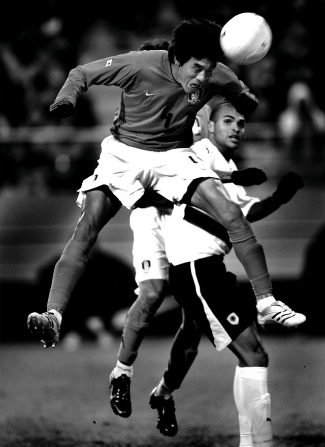 레벨이 다른 이영표 이기고 지는 것, 다만 몇 개라도 건수(공격 포인트)를 올리는 것과 한 단계 위의 축구를 하는 건 엄연히 다르다. 이것이 PSV 에인트호벤과 토트넘에서 수학한 이영표를 움직이게 만드는 동기 부여다. 지능적인 드리블과 드로인, 신속 배달되는 좌우 크로스, 윙 플레이어를 못살게 구는 대인 마크…. 그는 이번 월드컵에서 누구보다도 바쁘게 움직이며 감독의 전술과 팀 플레이에 헌신할 것이다. 자신의 플레이가 어느 클래스에 속하는지를 가늠할 수도 있을 것이다. 문득 스스로 향상되었음을 느끼는 순간, 두 다리로 그라운드를 박차고 떠올라 이렇게 환호할 것이다. |