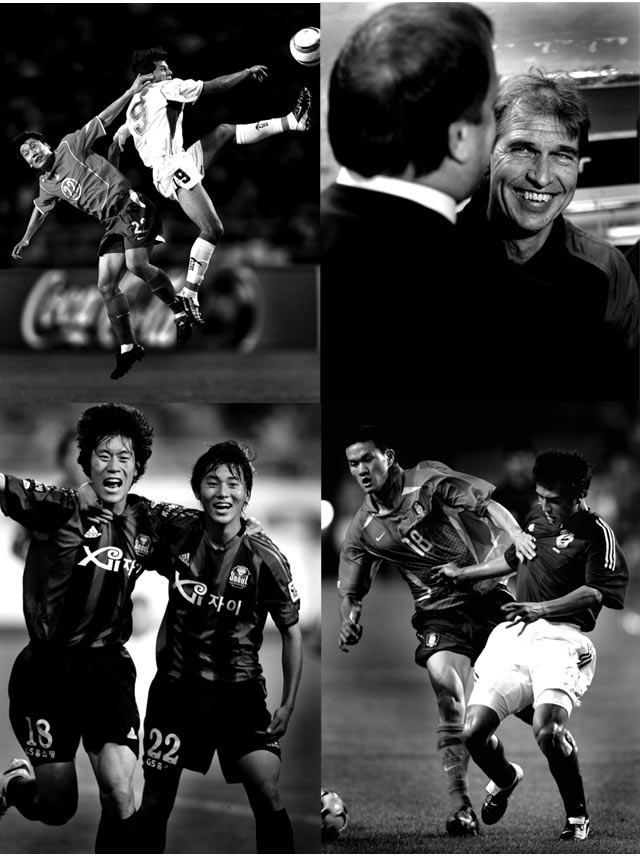 태극권 프리미어 리그의 경험을 더한 박지성과 이영표, 박주영과 안정환의 결정력, 전략적 요충지에서 리더십을 발휘할 김남일과 최진철. 다시 이운재의 손에 맡겨진 골문, 경험이야말로 힘임을 증명할 설기현과 송종국, 밝은 미래를 기약하게 될 김동진, 백지훈, 조재진. 히딩크만큼 늠름한 딕 아드보카트와 늘 그의 곁을 지키는 핌 베어백…. 전국이 ‘태극권’에 들었다. 하지만 새벽까지 눈꺼풀을 닫지 않고 TV 앞에 앉은 자만이 그들을 만날 수 있다. 그 수는 4년 전, 한반도를 물들였던 붉은 티셔츠의 장수에 미치지 못할 것이다. 하지만 그들의 결과가 아닌 헌신의 과정을 기억하려고 애쓰는 눈은 분명, 늘었다. |
