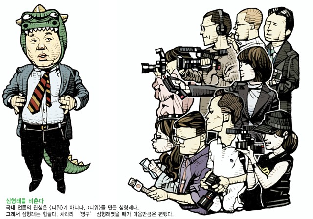 그래도 한때 심형래는 ‘신지식인 1호’로 선정된 바 있는 인물이다. 언론은 한때 그를 불가능에 도전하는 프런티어로 삼은 적이 있다. “못해서 안 하는 게 아니라, 안 하는 게 못하는 겁니다.”라는 그의 말은, 한때 무척 멋진 유행어로 통했다. 하지만 정작 그 프런티어는 요즘 이게 뭔가 싶다. 영화 만들어서 내걸기도 바쁜 판에, 온갖 언론 플레이까지 혼자 다 감당하고 있다. 손이 발이 되도록 뛰어도 모자랄 판이다. 그의 나이 올해로 오십이다. 심형래는 힘들다.