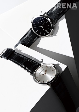 골드 인덱스와 핸즈, 강직한 로고 이외에는 그 어떤 장식도 없다. 화이트 골드 케이스는 기교 없이 담백하며 실버 다이얼은 케이스와 일관된 빛을 띤다. 여기에 탑재된 극도로 얇은 무브먼트는 간결한 우아함을 이끌어내는 가장 핵심적인 역할을 했다.