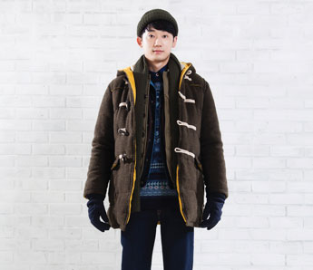 ◀ 카키색 니트 비니 8만6천원·카키색 니트 머플러 14만6천원 모두 나이젤 카본 by 샌프란시스코 마켓, 감색 모직 장갑 11만8천원 빈폴 맨, 레이스업 워커 부츠 37만8천원 더클랙슨 제품.