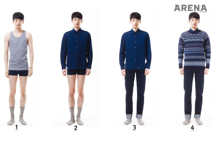 캐주얼한 룩은 포멀한 룩보다 훨씬 자유분방하게 겹쳐 입을 수 있다. 그러나 한 가지 규칙은 있다. 컬러나 패턴은 자유롭지만 옷을 한 겹 한 겹 벗었을 때도 겹쳐 입은 옷들이 동떨어지지 않게 조화를 이뤄야 한다는 것.