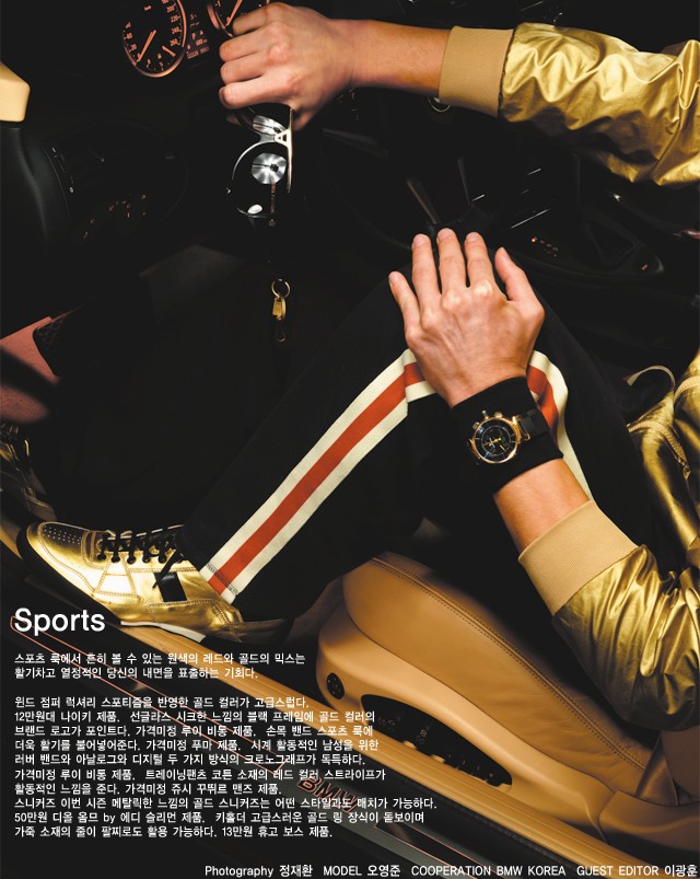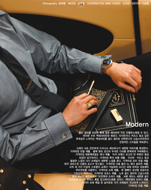 돌체&가바나의 골드 패딩 점퍼를 입으라고는 하지 않겠다. 하지만 이번 시즌 영롱하게 빛나는 골드 액세서리 하나가 당신을 람보르기니만큼 스타일리시하게 만들어줄 수도 있다. [2007년 10월호]
