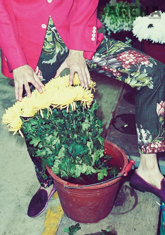꽃과 잎의 색으로 찬연해진 봄의 수트.