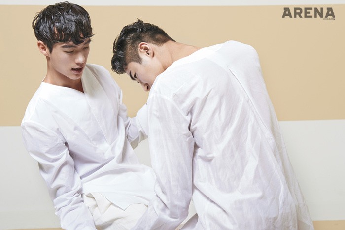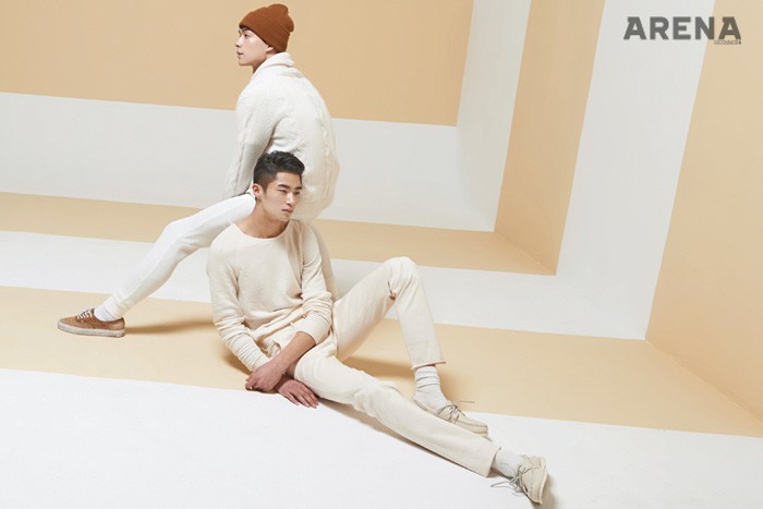 (왼쪽부터) 루스한 실루엣의 크림색 티셔츠·회색 반바지 모두 가격미정 H&M, 갈색 니트 비니 7만2천원 페로우즈 by 배럴즈, 카키색 스웨이드 스니커즈 15만9천원 사와 제품. 흰색 포켓 티셔츠 가격미정 올세인츠, 회색 스웨트 반바지 6만2천원 아메리칸 어패럴, 흰색 드로어즈 5만8천원 캘빈클라인 언더웨어, 회색 니트 비니 가격미정 슈페리어 레이버 by 배럴즈, 회색 스니커즈 34만9천원 암스테르담 by 존 화이트 제품.
