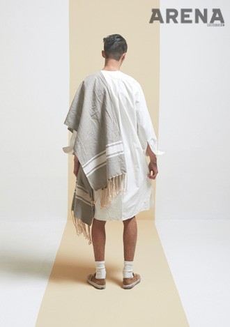 원피스 형태의 실제 독일군 잠옷 가격미정 컴뱃샵, 실버 팔찌 11만5천원 노트, 흰색 양말 1만원 아메리칸 어패럴, 베이지색 스웨이드 스니커즈 7만9천원 반스, 어깨에 걸친 숄 에디터 소장품.