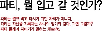 불과 5, 6년 전만 해도 파티는 특정인들에게만 해당되는, 대중들에게는 부담스럽다 못해 다소 생소한 단어였다. 그러나 요즘은 어떤가. 파티 시장을 둘러보면 정말 놀라운 발전이 아닐 수 없다. 그렇다고 파티가 서울, 이 도시에서 완전한 문화로 정착된 것은 아니다. 단지 예전에 비해 인식이 달라졌을 뿐. “파티에 가려면 도대체 어떤 옷을 입고 가야 해요?”라는 질문을 얼마나 많이 받았는지 모른다. 사람들은 대개 파티에 대한 기대감만큼이나 부담감도 커서 갈등이 많기 때문이다. 주말은 물론, 주중에도 여기저기 열리는 다양한 파티들. 24시간 편의점에서 참치 마요네즈 삼각김밥을 고르듯 취향대로 파티를 고를 수 있는 요즘이다.