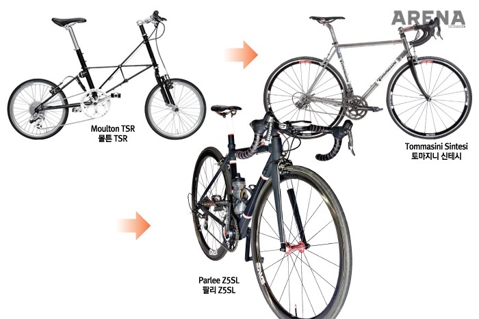 토마지니 신테시를 탔었죠. 몰튼은 영국 감성이 잘 표현된 자전거입니다.