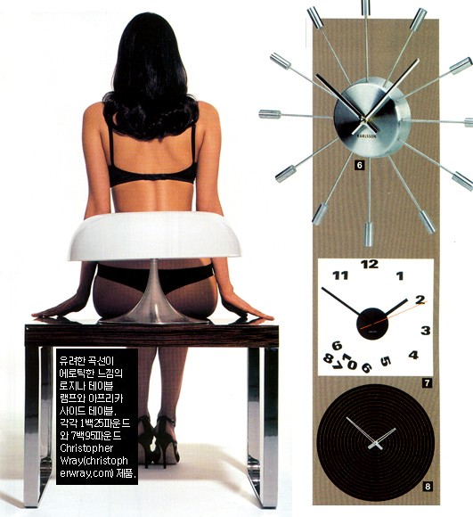 시계 하나 잘 걸었을 뿐인데…. 라고 말하고 싶다면 바탕에 ‘XX동창회’ ‘XX은행’라고 쓴 벽 시계는 과감히 버려라. 김완선 브로마이드 붙이던 시절이 그리워 붙여놓은 여배우 사진도 떼어라. 한없이 가벼워서 걸어놓은 것인지 떠 있는 것인지 헷갈리는 이발소 그림도 떼어내라. 심플한 디자인의 벽 시계 하나만 걸어보자. 레트로풍 시계라면 가산점. 6 전통적인 시계 디자인에서 벗어난 드웰의 벽 시계. 42파운드 Dwell(dwell.co.uk) 제품. |
