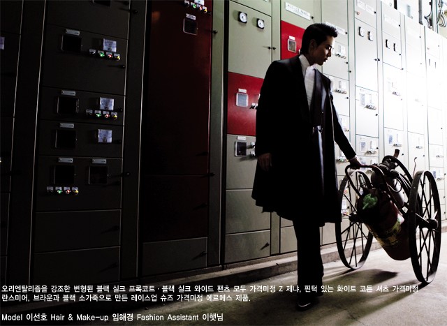 블랙칼라 워커라면 싱글 피크트라펠이나 더블 숄칼라 턱시도쯤은 기본이다. 하지만 이번 시즌 디자이너들은 보다 더 젊고 파워풀하게 디자인한 턱시도 재킷과 팬츠를 선보였다. 새롭게 변형된 스타일로 등장한 이번 시즌의 뉴 턱시도 룩.<br><Br>[2007년 12월호] CREDIT INFOModel 이선호 Hair&Make-up 임해경 Fashion Assistant 이햇님
