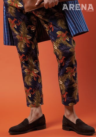리넨 소재의 바지 13만9천원 모두 바나나 리퍼블릭, 아이보리색 헨리넥 티셔츠 6만3천원 비슬로우, 하와이언 무늬의 슬립온 7만9천원 탐스, 라피아 해트 26만5천원 안토니 페토 by 샌프란시스코 마켓