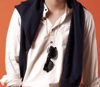 집 안에서 뒹굴뒹굴할 때 입는, 꼭 내복 같기도 한 헨리넥 톱은 화려한 차림을 더 능청스럽게 한다.