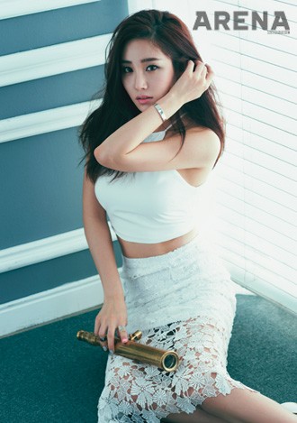 흰색 슬리브리스 톱은 자라, 레이스 치마는 페이우, 은색 뱅글은 넘버링 제품.