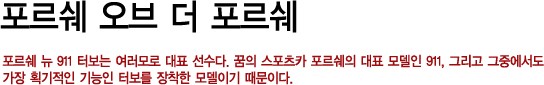 포르쉐 뉴 911 터보는 여러모로 대표 선수다. 꿈의 스포츠카 포르쉐의 대표 모델인 911, 그리고 그중에서도 가장 획기적인 기능인 터보를 장착한 모델이기 때문이다.<br><br>[2006년 8월호]