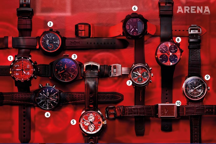 9 ‘앰복스7 크로노그래프’는 애스턴 마틴을 위한 시계인 만큼, 뱅퀴시의 라디에이터 그릴에서 영감을 얻은 다이얼이 강렬하게 눈길을 끈다. 사파이어 크리스털을 누르는 것만으로 크로노그래프를 사용할 수 있다는 점은 아주 획기적이다. 3천4백만원대 예거 르쿨트르 제품.