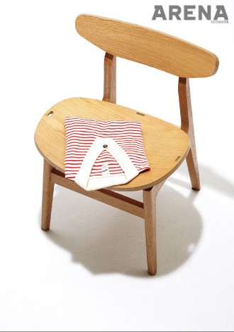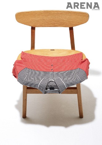 빨간색과 아이보리색이 조화롭다. 대표적인 머린 룩 스타일의 반소매