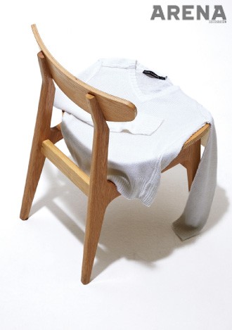 화이트 오크 컬러의 디어 체어. 다리와 등받이, 좌판이 이루는 각도를 차별화해 편안함을 배가시켰다. 55만원 프레그셋 제품.