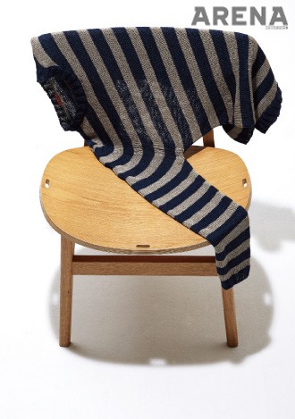 남색 줄무늬 니트. 속이 비칠 정도로 성글게 짜인 줄무늬 디자인이 캐주얼하다. 34만3천원 바레나 by 비이커 제품.