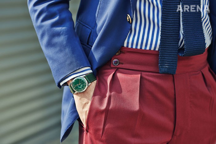 동생 니콜라 리치는 형에 비하면 분방한 편이다. 가감할 것 없이 명확한 파란색 재킷과 빨간색 팬츠, 초록색 스트랩 시계, 쉽지 않은 색들이 요동쳐도 질서가 느껴지는 이유에 대해 물어봤다.