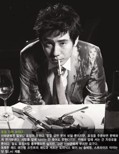 그러니 만날 독특한 캐릭터를 맡지.(웃음) <킬러들의 수다> <복수는 나의 것> <지구를 지켜라> 등등 도대체 정상적인 캐릭터가 없었다. 행여 <서프라이즈>처럼 정상적인 역할을 맡았을 때에는 그 영화가 쫄딱 망했다.