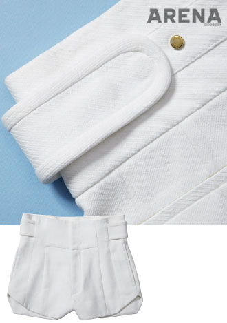 허벅지를 거의 다 드러내는 길이의 마이크로 쇼츠다. 중성적인 옷인 만큼 세부 역시 섬세하다. 벨트가 있어야 할 자리에 바지와 같은 원단의 스트랩 장식을 달았다. 금색 똑딱이 단추로 길이를 조절할 수 있는데, 흰색과 단추 색감의 조합이 근사하다. 가격미정.