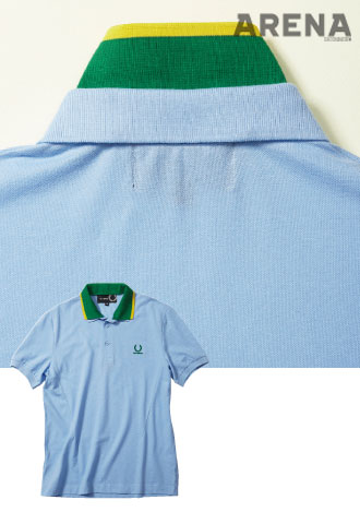 이중 칼라 피케 셔츠다. 평범한 하늘색 피케 셔츠에 브라질 국기 색깔의 칼라를 더해 경쾌한 분위기를 극대화했다. 원색 칼라는 단추로 떼었다 붙일 수 있다. 옆구리 부분에 사선 스티칭을 더해 입체감 있는 실루엣을 완성했다. 26만5천원 비이커 판매.