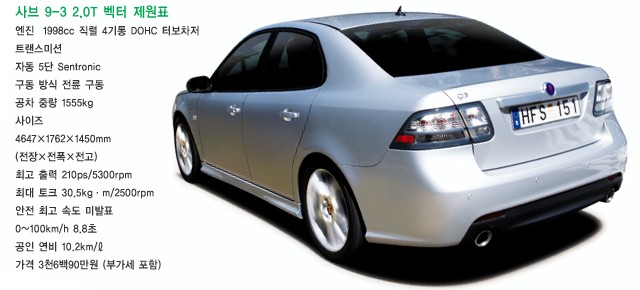 누군가 사브의 영광은 1980년대까지였다 고 말한다면, 솔직히 강하게 반박의 말을 내뱉진 못할 것 같다. 맞다. 그때 사브는 어떤 브랜드보다도 굉장했다. 하지만 모 기업이 바뀌면서 사브의 성격은 조금 모호해졌다. 볼륨 브랜드가 아니었던 사브 마니아들은 차츰 사브에 대한 애정을 버리고 떠나기 시작했다. 사브에 암흑기가 찾아왔다는 건 2000년대에 들어오면서 명명백백해졌다. 결국 한국의 도로에서 사브를 찾는 건 쉽지 않은 일이 됐다. 이번에 출시한 2000cc 터보 엔진의 사브 9-3 2.0T 벡터와 2800cc V6 터보 엔진을 장착한 9-3 에어로는 비슷한 시기에 출시된 9-5와 함께 사브 부활의 사명을 후드 위에 짊어지고 이 땅에 등장했다. 그만큼 다방면에서 소비자를 유혹할 만한 요소들을 갖추고 있다. 새로운 엔트리 모델 2.0T 벡터는 기존 엔트리 모델인 리니어에 비해 60마력이 증가한 210마력 고출력 터보 엔진을 탑재했다. 또한 프런트 시트 메모리 기능, 몸을 흔들림 없이 잡아주는 스포츠 시트, 17인치 휠 등이 기본인데도 오히려 가격은 3천6백90만원이다. 성능은 올리고 가격은 낮춘 정책은 최근 GM코리아가 진행하는 전략이다. 사브의 인지도가 낮아 우선 엔트리급 모델인 9-3 2.0T 벡터를 손대면 닿을 수 있는 거리에 위치시키고자 한 거다. 이런 정책은 최고 250마력 최대 35.7kg·m의 토크를 선보이는 사브 9-3 라인의 최고급 모델인 에어로에도 적용됐다. 코너링 헤드램프를 비롯해 6.5인치 터치스크린 내비게이션 등을 기본 사양으로 장착하고도 5천4백50만원이라는 가격으로 확정됐으니까. GM코리아 측은 사양 가치를 고려해 최고 1천3백만원 이상의 인하 효과가 있다고 말한다. 외관에서 보여준 많은 변화도 스포츠 세단의 이미지를 한층 더 날카롭게 다듬었다. 여기서 한마디 하자면, 사브는 승용 세단이 아닌 고성능 스포츠 세단이다. 폭발적인 성능과 빠른 응답성을 지니고 있어 진중한 일반 승용 세단을 바라보는 잣대로 사브를 평가해선 안 된다는 말이다. 달리기를 위한 최적의 디자인은 공기저항계수를 0.28로 달성해 주행 시 양력 발생까지도 다부지게 잡아냈다. 2.0T 벡터와 에어로의 차이는 눈에는 보이진 않는다. 겉모습에서 2.0T 벡터와 에어로의 유일한 차이라면 에어로의 에어인테이크 부분이 블랙이라는 점. 다른 엔진과 다른 변속기만의 조합으로 얼마나 큰 차이를 만들어낼 수 있는지는 직접 운전을 해봐야 알겠지만, 2.0T 벡터와 에어로의 평판은 좋다. 디자인 부분에서도 과거의 흔적을 찾을 수 있고, 가격도 싸고, 성능도 좋다. 무엇보다 희소성이 높은 차라는 점에서 끌리는 건 사실이다.