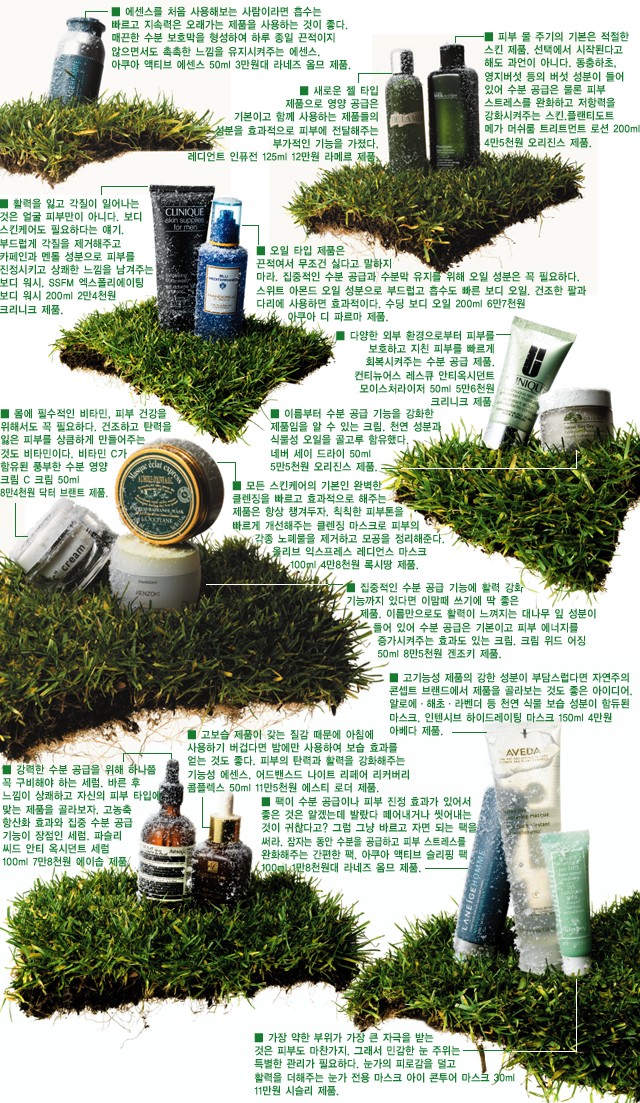 겨울이 채 가지도 않은 2월이지만 트렌드를 발 빠르게 전하려는 <아레나>는 푸릇푸릇한 2008년 봄 신상품들을 소개하는 데 여념이 없었다. 물론 이러한 봄 제품들을 지금 당장 사용하라는 것은 아니다. ‘멋쟁이는 여름에 쪄죽고 겨울에 얼어 죽는다’는 말이 있는데 특히 겨울에서 봄으로 넘어가는 시기에는 얼어 죽기 딱 좋으니 조심해야 한다. 봄 아이템은 아직은 사전 정보 수집용으로만 활용하라는 얘기다. 특히 스킨케어에 있어서는 성급한 마음을 버려야 한다. 2월에는 아직 차갑고 건조한 겨울 날씨에 적합한 스킨케어 제품을 사용해야 하고, 겨우내 지치고 다친 피부를 달래주는 데 집중해야 한다.