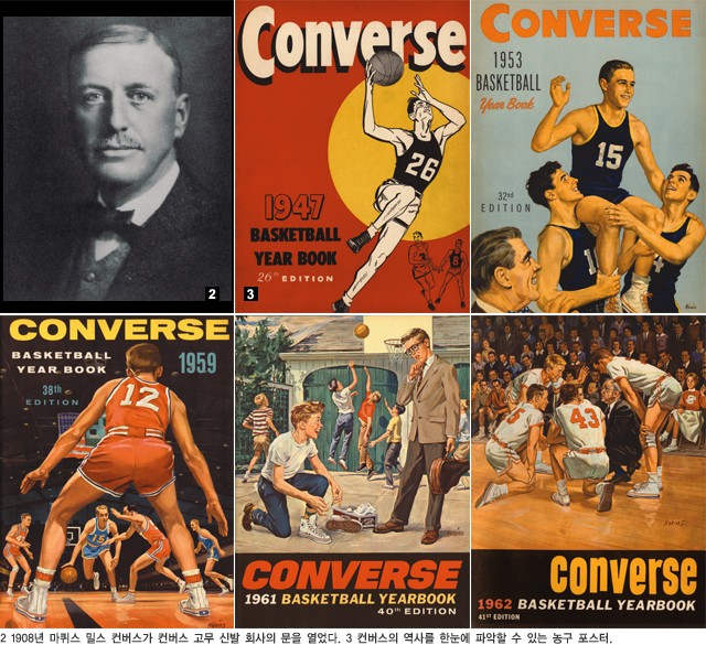 우선 컨버스란 이름을 처음 세상에 알린 사람은 ‘척 테일러’라는 농구선수였다. 1921년 컨버스 배스킷볼 연보를 처음으로 출간하며 1923년 자신의 서명이 들어간 고무 패치를 발목에 부착했는데 이로써 현재 컨버스 올스타의 기원이 된 ‘척 테일러 올스타’가 탄생했다. 상대편 선수들에게 공포의 대상이었던 척은 자신의 이미지를 가장 잘 표현해주는 농구화로 컨버스를 대표하는 선수가 되었다. 다음 타자는 바로 1950년대의 ‘엉덩이 엘비스’였다. 로큰롤의 제왕인 엘비스 프레슬리는 깃 넓은 재킷과 셔츠 그리고 슬림한 핏의 팬츠에 구두 대신 컨버스를 매치함으로써 노래만큼이나 그의 패션을 젊은이들에게 히트시켰다. 다음은 리버풀 출신의 더벅머리 총각들. ‘영국의 습격’이라고도 불렸던 비틀스는 몸에 슬림하게 붙는 모즈 룩을 유행시켰는데, 컨버스는 바로 이 트렌디한 룩의 핵심이었다. 1960년대 미국인은 ‘자유’의 최고봉에 있는 컨버스 때문에 국가에 대한 충성심이 고취되었다고 해도 과언이 아니다. 다름 아닌 백악관의 주인이 컨버스를 애용한 것인데, 주인공은 그 이름도 유명한 J. F 케네디였다. 쿠바 미사일 문제로 한창 여론이 시끌벅적할 때 컨버스 신발을 신은 대통령은 강한 추진력을 가진 것으로 국민들에게 비쳐졌다. 그 모습을 본 국민들은 자신들 역시 국가를 위해 무엇을 해야 하는지 진취적 고민을 하게 되었다. 놀라운 컨버스의 마력이 증명된 실례다.