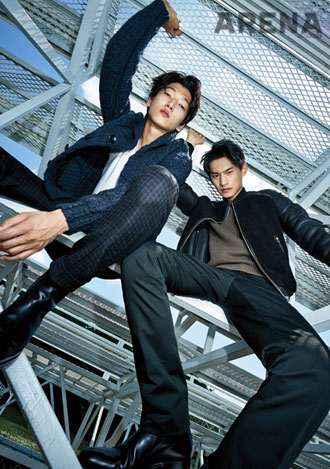 (오른쪽) 옅은 갈색 스웨터·가죽과 양털이 조화를 이룬 블루종·검은색 바지·검은색 앵클부츠 모두 가격미정 에르메스 제품.