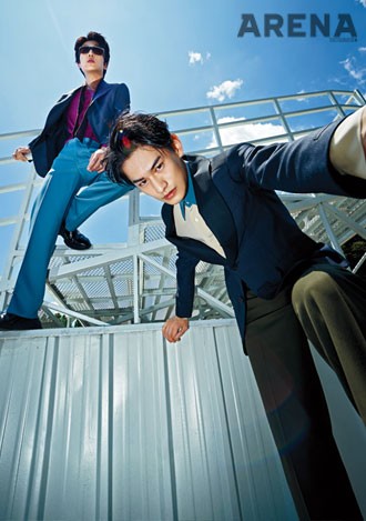 (왼쪽) 셔츠·베스트·재킷과 블루종을 혼합한 아우터·바지·와인색 앵클부츠 모두 가격미정 제냐 꾸뛰르 컬렉션 by 스테파노