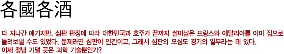 술맛을 아는 당신을 위한 각양각색 나라별 술 이야기. 바다, 쇼핑, 유적지, 여자… 다 좋지만 여행을 갔다면 그 나라의 대표 술을 음미해보자. `참이슬`과 `카스`에 지친 위도 달랠 겸.<br><br>[2006년 8월호]