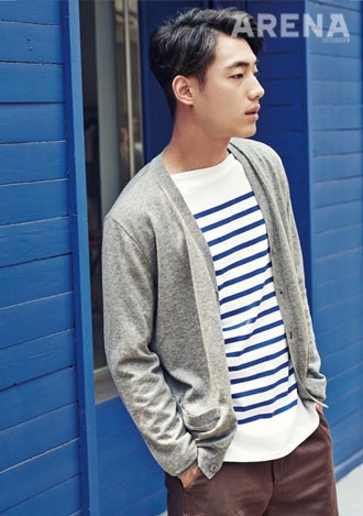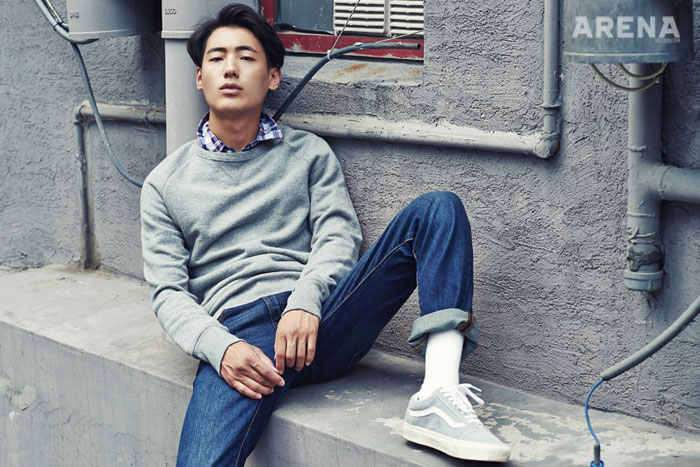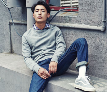 밴드 칼라의 리넨 셔츠 위에 브이넥 스웨터를 덧입는다. 셔츠 단추를 풀어 브이넥과 자연스럽게 어우러지도록 한다. 패턴이 도드라진 것보단 단색 스웨터가 훨씬 세련되어 보인다. 데님 소재의 반바지를 매치하고 간편한 운동화로 마무리한다.
