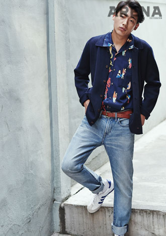 여름 분위기 물씬 풍기는 패턴 셔츠는 차분한 색감의 카디건과 함께 입는다. 물 빠진 청바지 안으로 셔츠를 넣고, 벨트를 매는 식의 복고풍 양념을 살짝 더한다. 클래식한 운동화를 신으면 깔끔한 스타일을 완성할 수 있다.
